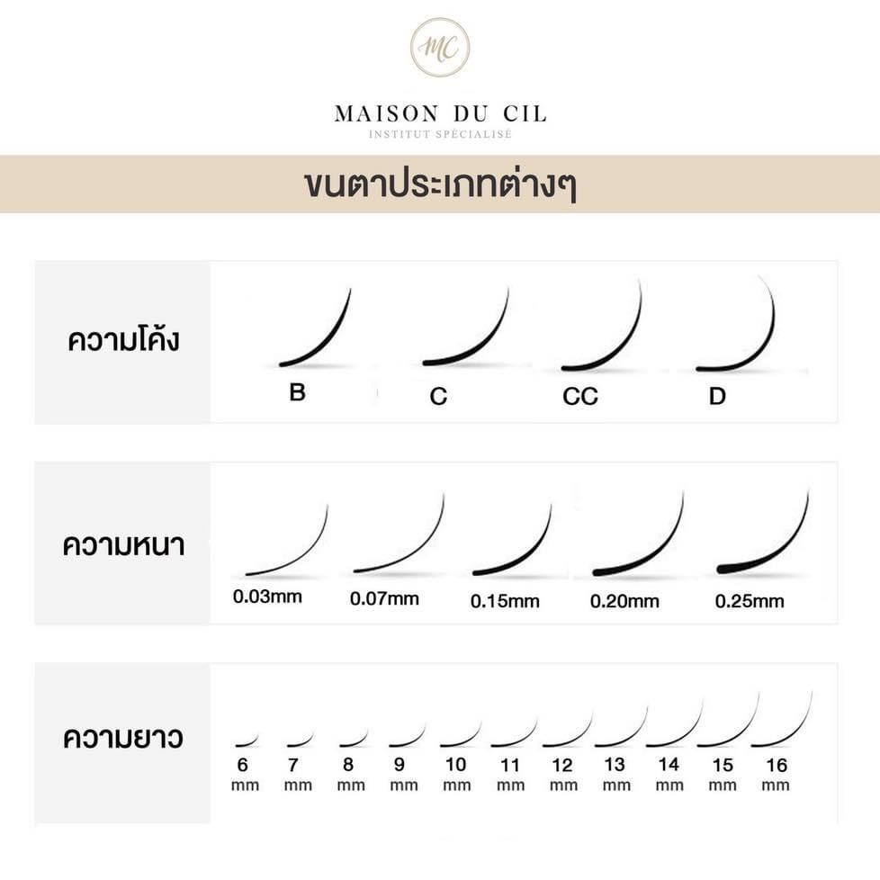 เรามีรูปแบบให้เลือกหลัก ๆ 3 แบบ โดยแต่ละแบบแตกต่างกันในเรื่องของลักษณะเส้นขน ความหนา ความโค้งงอน และความเหมาะสมกับขนตาจริงของลูกค้า