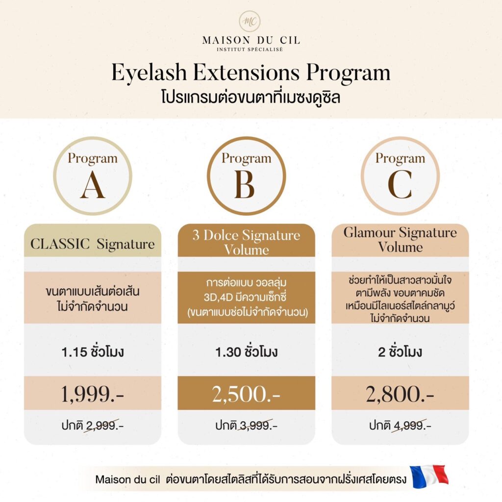 ราคาต่อขนตาเริ่มต้นที่ 1,999 บาท โดยราคาจะปรับตามรูปแบบและประเภทของขนตาที่ลูกค้าเลือก ทางสถาบันมีรายการให้เลือกตามความต้องการและลักษณะดวงตาของแต่ละบุคคล
